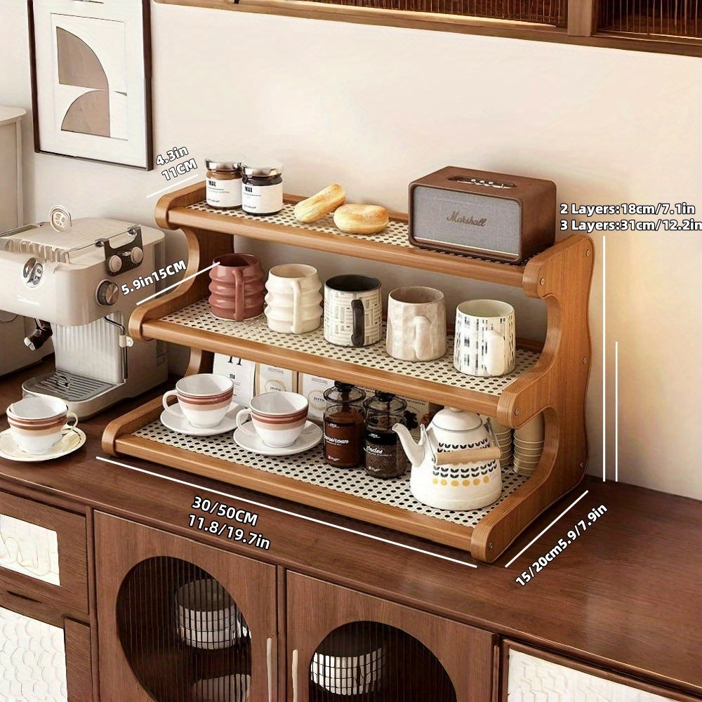 A Three-Tier Or Two-Tier Kitchen Storage Rack, a Rack for Dishes And Cups, Designed with a Hollow Board for Drainage, a Coffee Bar Shelf, a Countertop Cabinet for Cups.