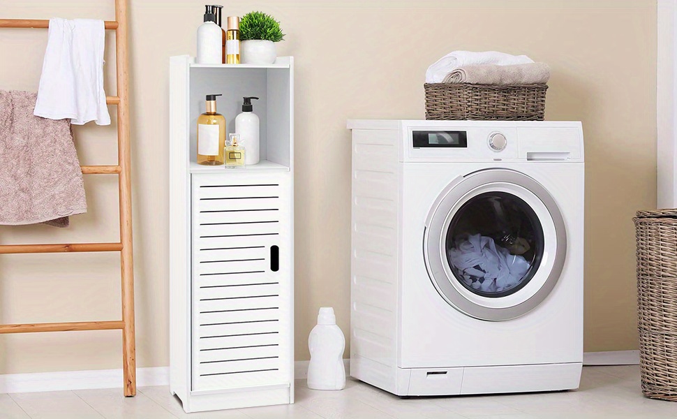 [Unique Design]This white storage cabinet with doors adopts a unique design of three cabinets and one door, which allows you to easily classify different types of items, keeping your items neat and organized and making full use of your space.