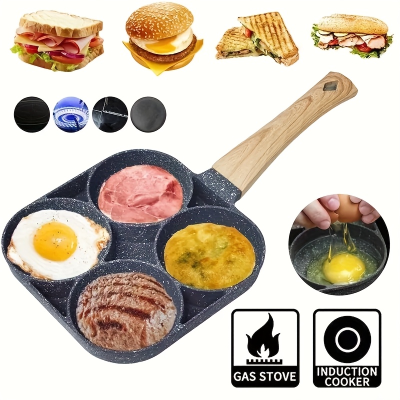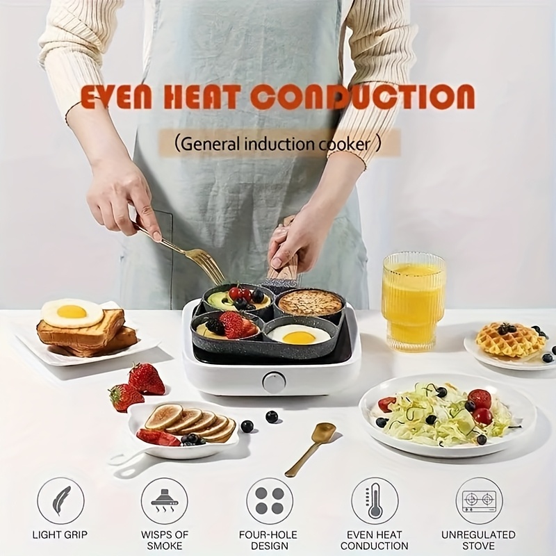 Characteristics: Four-Hole Configuration: Prepare several dishes at the same time with the handy four-hole setup. It's great for cooking breakfast favorites such as eggs and pancakes together, allowing you to save time in the kitchen. Non-Stick Coating: The high-quality non-stick layer guarantees that food comes off easily without adhering, resulting in easy cooking and simple cleanup. Multi-Purpose Cooking: Perfect for a range of meals—use it for eggs, pancakes, omelets, burgers, or even grilled vegetables. This skillet