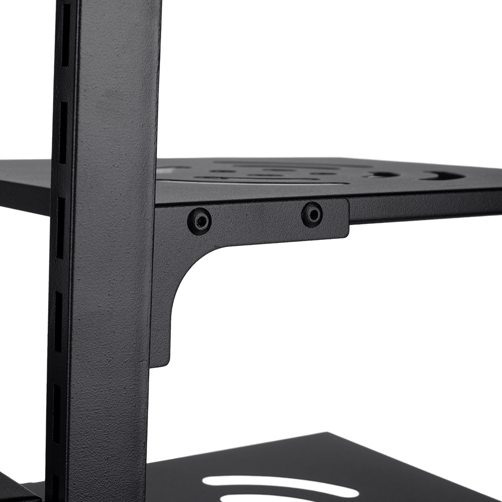 Specifications: Overall Dimension: 51cm W x 22.6cm D x 53cm H Colour: Black Material: Carbon Steel Product Type: Freestanding Number of Tires: 7 Rust Resistant: Yes Assembly Required: Yes