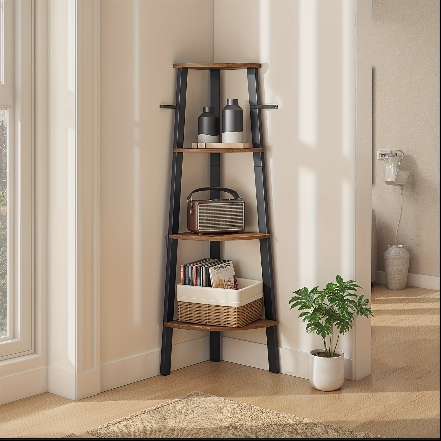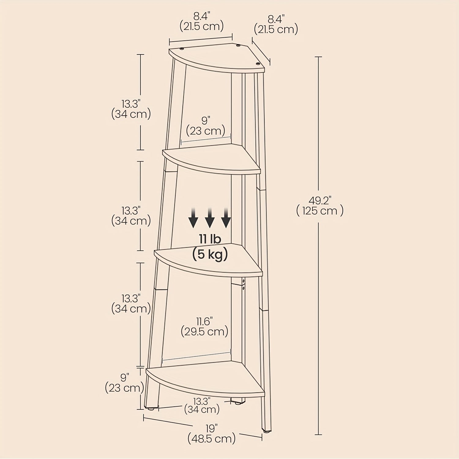 Corner Shelf, 4-Tier Corner Bookshelf, Storage Shelving Unit with Steel Frame